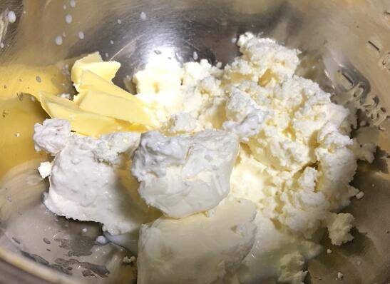 用料:奶油奶酪100克、牛奶20克、鸡蛋2个、低粉20克、糖粉20克、黄油10克、马斯卡波尼20克。