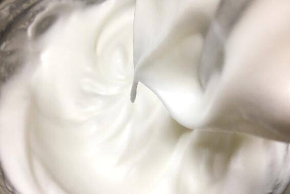 5、蛋白加少许柠檬汁分三次加入糖粉打至湿性发泡。