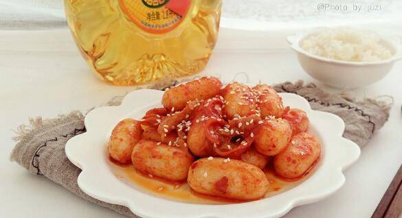 最佳答案芝士年糕200克、胡萝卜一根、泡菜100克、番茄少许、韩式辣椒酱2小勺、纯净水半碗、玉米油适量。胡萝卜切丝,将年糕滚水里煮2分钟。捞出放入凉水中以免年糕粘连到一起,热锅凉油避免损失掉油里的营养。放入胡萝卜丝煸炒一下,再放入年糕、辣白菜和半碗水。最后加入番茄酱和韩式辣椒酱大火收汁即可出...