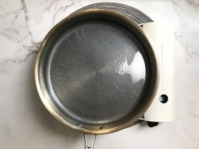 4、锅内倒入植物油,加热至8成热。