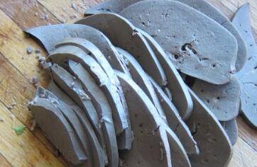 煮熟的羊肝切片不用切得太厚了,免得入味会差一些。