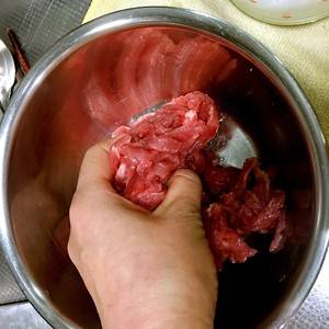 2、牛里脊切丝后,攥一下水分。