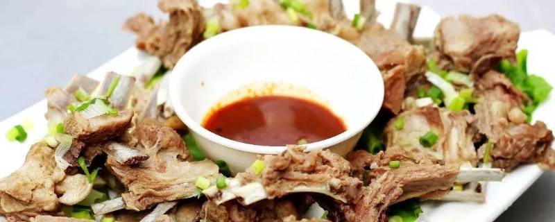 9、羊排肉沾上用六月鲜特级酱油、味达美清香米醋、葱丝调制的料汁食用即可。