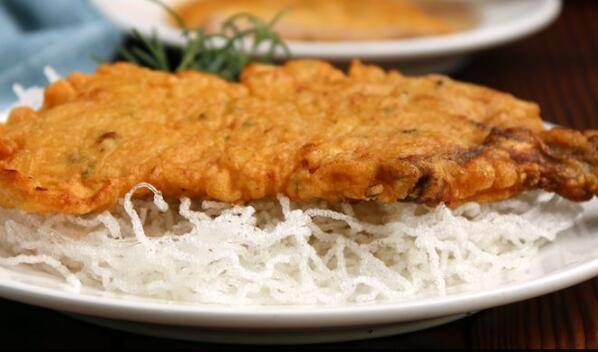 再把大排加入挂糊,热锅倒油,油温7分热先把粉丝加入至膨胀后捞起。