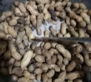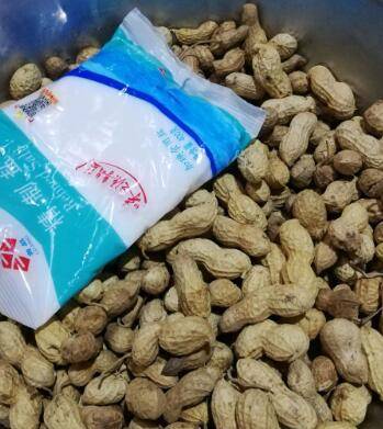 将带皮花生上的土洗掉,晾干。准备好锅,洗干净不要带油,放入盐,等温度上来放入花生。
