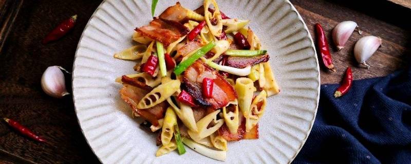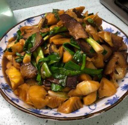 最佳答案用料:春笋500g切块、酱肉150g切片、大蒜叶半斤、料酒2勺、生抽3勺、老抽1勺、白糖20克、水300克、食用油30克。1.春笋切块。2.把大蒜叶的根部压扁,热锅下油,爆香后盛出。3.原锅煸炒春笋和酱肉,煸香后加入酒、生抽、老抽、糖、水加盖小火焖煮15分钟至笋和肉熟透,再加入之前爆香的大蒜叶翻炒均匀...