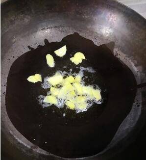 冷油下锅爆香姜片。