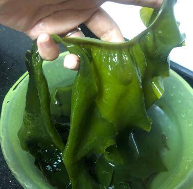 1、裙带菜先用水泡半小时,洗干净。