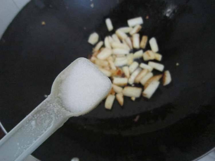 3、热油锅把香肠下锅煸炒至表面焦黄时取出备用。