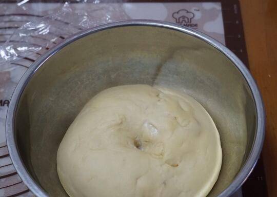 5、放回大盆中,盖上保鲜膜进行第一次发酵。