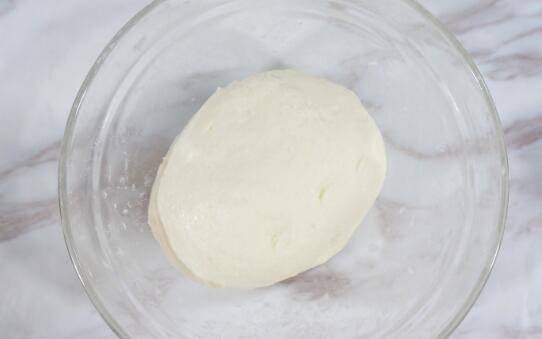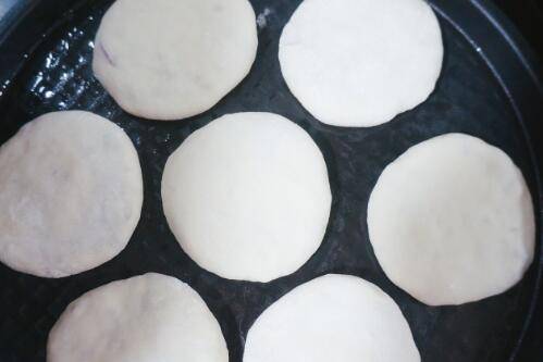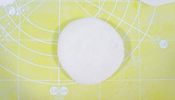 10、将面团倒扣过来,压平。