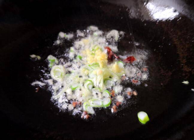 4.锅里放入食用油,油热后先放花椒和大料来爆香,再放葱末和姜末。