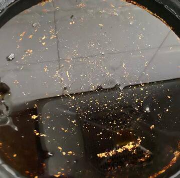 6、轻轻放入油中,约一分钟,从另一端轻轻抽出油纸,烧肝煎至表面金黄定型,捞出控油,摆入容器中。