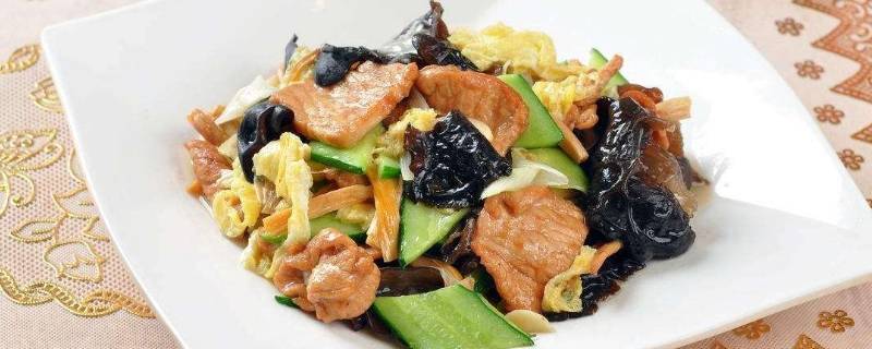 用料:黄瓜1根、鸡蛋2个、通脊肉150克、木耳10克、姜丝少许。