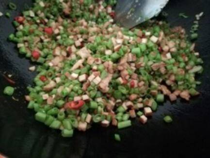 用料:空心梗一把、酱豆干3块、瘦肉一块、小米椒3个、大蒜3瓣、盐适量、生抽适量、老抽适量、淀粉适量、油适量。
