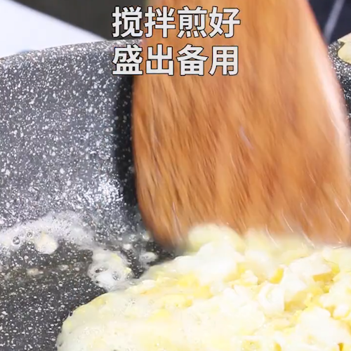 5、倒入方便面、鸡蛋及煮备好的调料翻炒均匀即可。