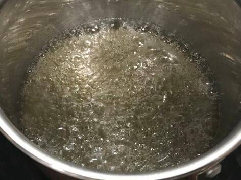 开中火加热砂糖和水,糖水煮开后转小火(此时开始加热鲜奶油)。