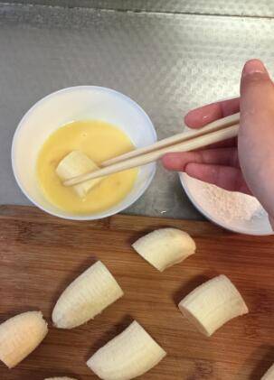 香蕉切段,去掉坏掉的部分,香蕉段在蛋清里多滚几次。