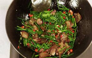 10、倒入韭菜花。