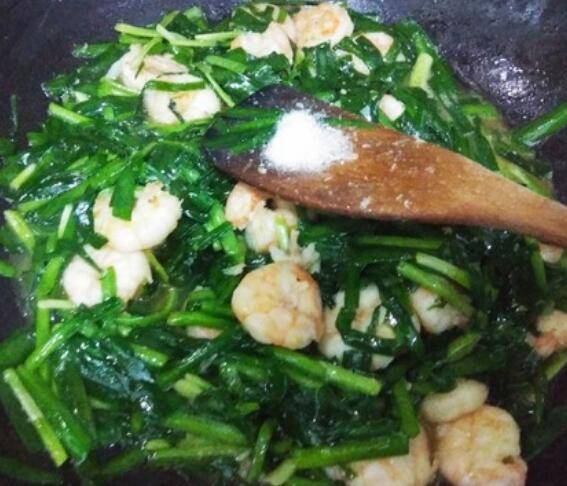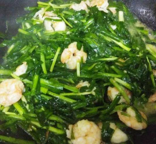 用料:大虾400克、韭菜400克、精盐少许、味精少许、黄酒半勺、大蒜粉少许、胡椒粉少许。