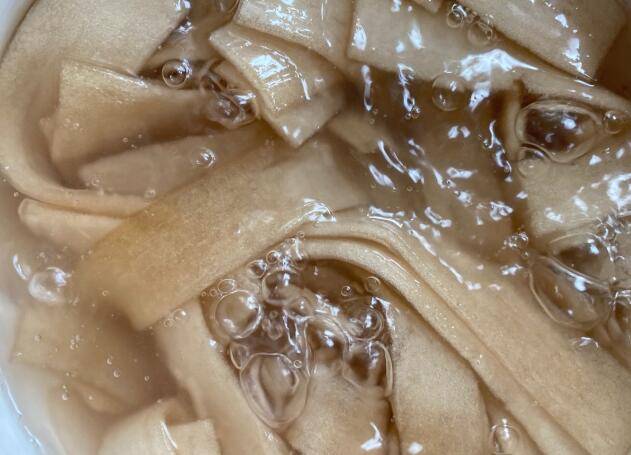 1、水开后煮熟宽粉,捞出过凉。