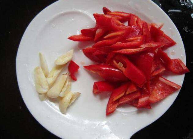 4、锅热油,爆香蒜片。