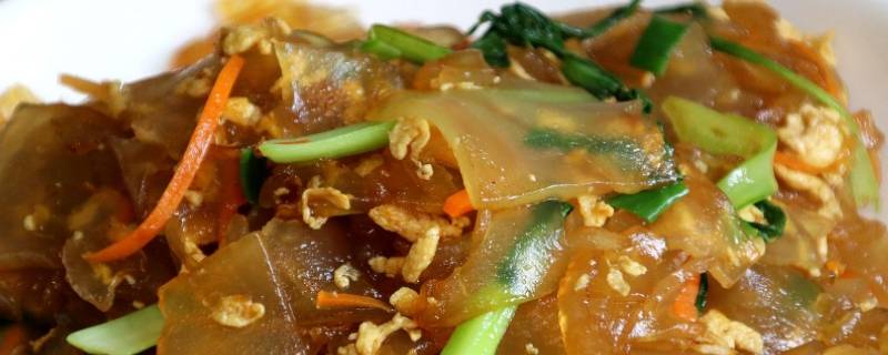 6、下入拉皮炒散,汤汁略收干,再下入黄瓜。