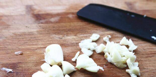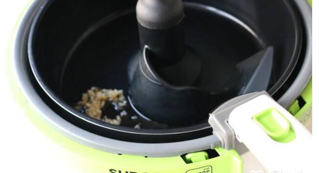 5、炸锅内加入花生油,设定炸锅时间2分钟,爆香蒜末。