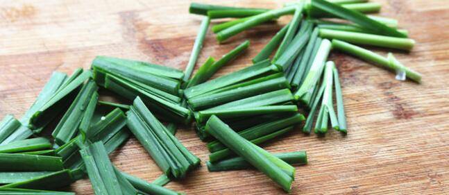8、加入韭菜段和蚝油,炸1分钟即可。