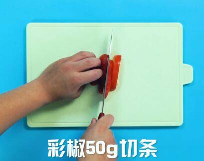 用料:茄子250克、彩椒50克、葱末5克、蒜末3克、食用油8毫升、生抽3克、盐2克、糖3克。
