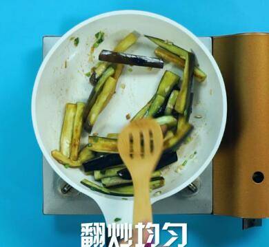 油锅放入葱末、蒜末大火爆香后,倒入茄子大火翻炒2分钟。