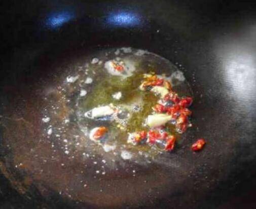 准备食材:红薯200g、食盐适量、调和油适量、红尖椒适量。地瓜剥去皮洗净切薄片;热锅温油放入干红辣椒爆香;倒入地瓜片大火翻炒;加入适量盐炒至地瓜变色即成。