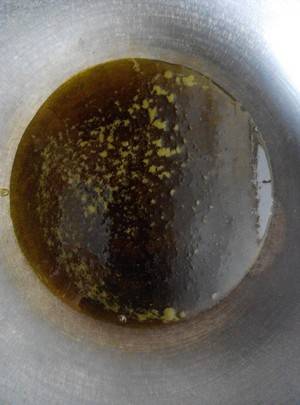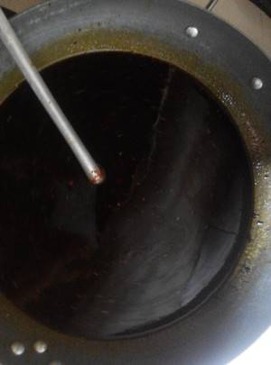 5、捞出肉渣,放入白糖,直到白糖变色。
