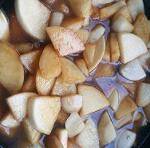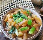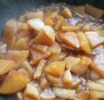 3、锅中倒油,加入白萝卜炒2分钟,倒入生抽、老抽、糖、翻炒。
