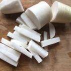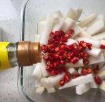 2、白萝卜洗净,切成条,小米椒切段,备用。