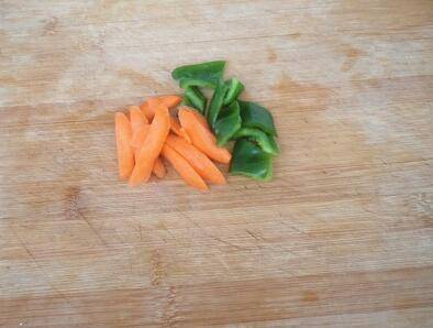 起油锅,胡萝卜、青椒入锅过油后盛出。