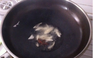 锅上火油烧开,放入葱和干辣椒爆锅;