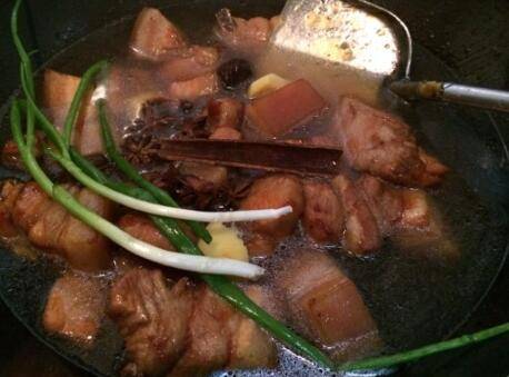 11、加葱姜、八角、桂皮、草果、水,使其没过肉。