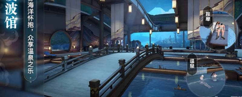 天谕手游凌波馆在苏澜城与汐语湾中间,来到花海之间这里就是泡温泉的地方。
