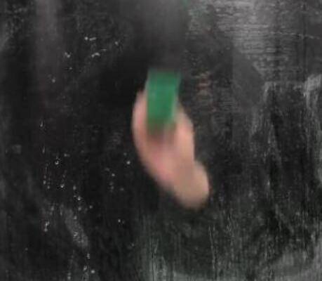 3、用蘸有白醋的百洁布对着玻璃上的白碱用力轻轻擦拭即可,所有有白碱的地方都要擦拭到位。用百洁布擦拭完毕后,静静等待5分钟,使醋酸能够有时间与白碱充分发生反应。