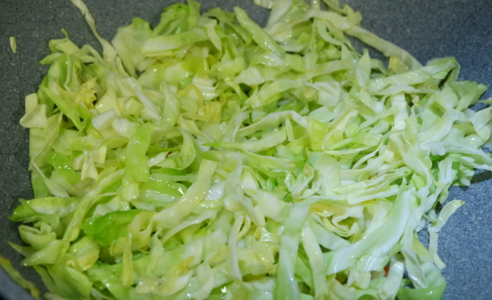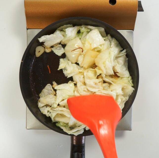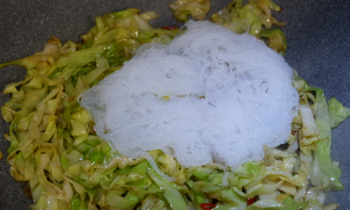 7、将粉丝与白菜炒至完全融合,根据个人口味加少许盐调味即可。
