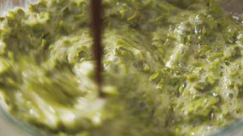 2、入锅后香椿会立刻变成翠绿的颜色,焯水20秒左右即可捞出。