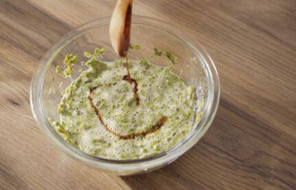 7、再调入10毫升生抽增味,蛋液搅拌均匀。