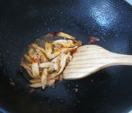 加半勺花椒面、盐炒匀,烹入少许醋;