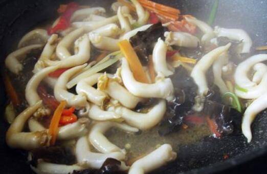 准备食材:河蚌400g、胡萝卜50g、黑木耳50g、蒜50g、干辣椒50g、蚝油适量。