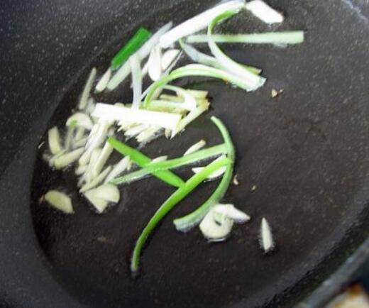 再将胡萝卜、干辣椒、木耳、葱花、大蒜倒入翻炒一下。