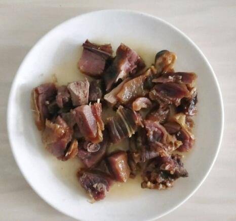 1、腊鸭腿洗一下上锅蒸熟,取出切小块。