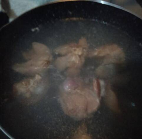 水沸腾后加入鸡肝煮到水再次沸腾关火。