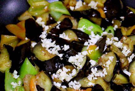 放入茄子小火煸炒,用不了几分钟,茄子就会炒软,记得用小火,不然会炒糊掉而茄子还未熟。