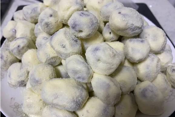 4、趁热将红枣一粒一粒搓圆,放入盘中裹一层奶粉即可。